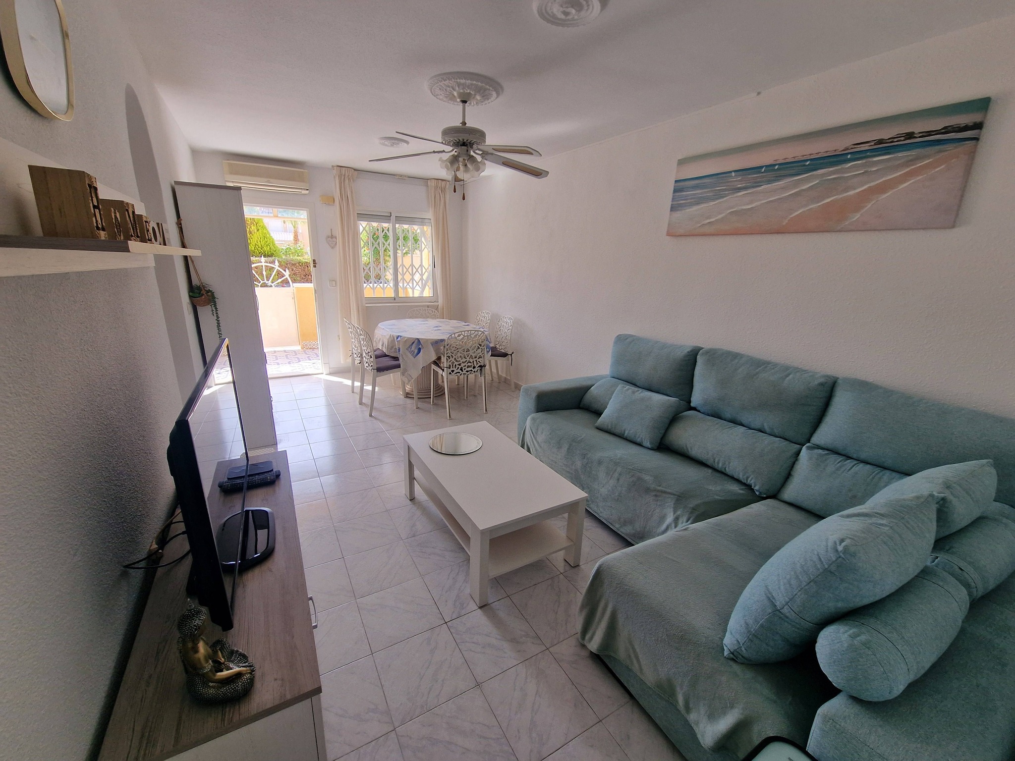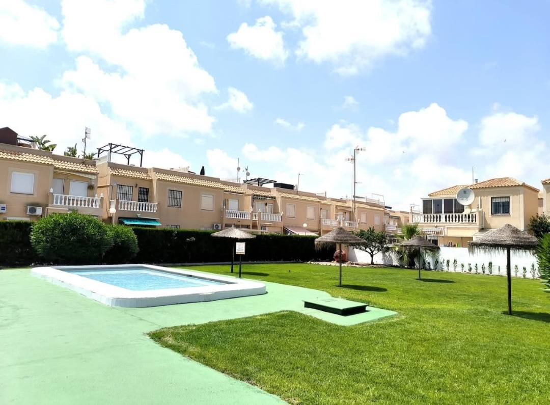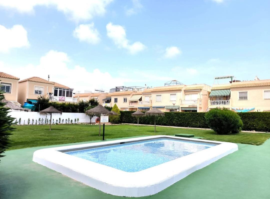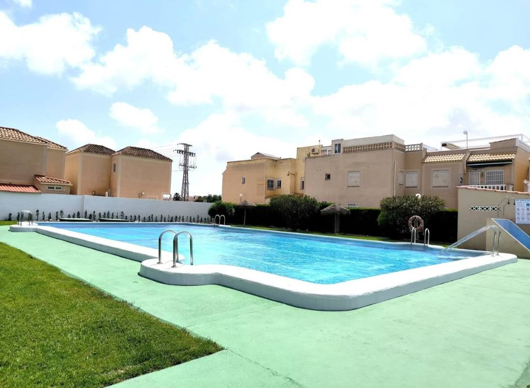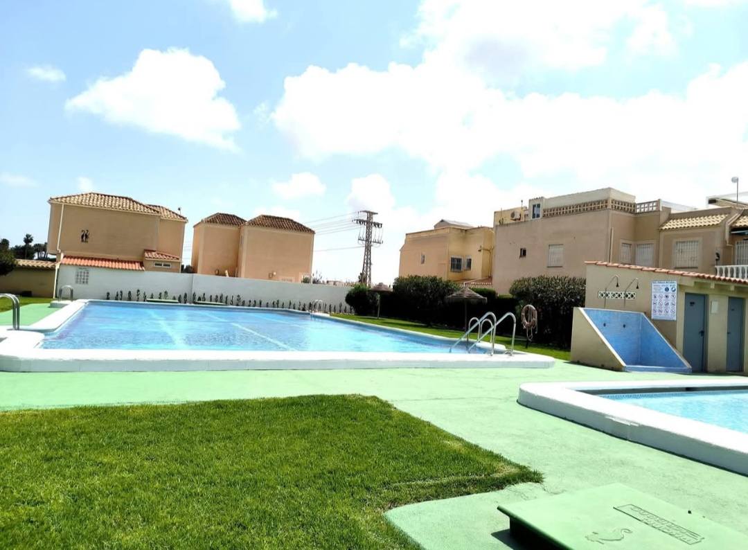 Bungalow rez-de-chaussée de 3 chambres, 1 salle de bain, salon/salle à manger lumineux, cuisine indépendante, buanderie, WC indépendant, terrasse et superbe piscine communautaire.