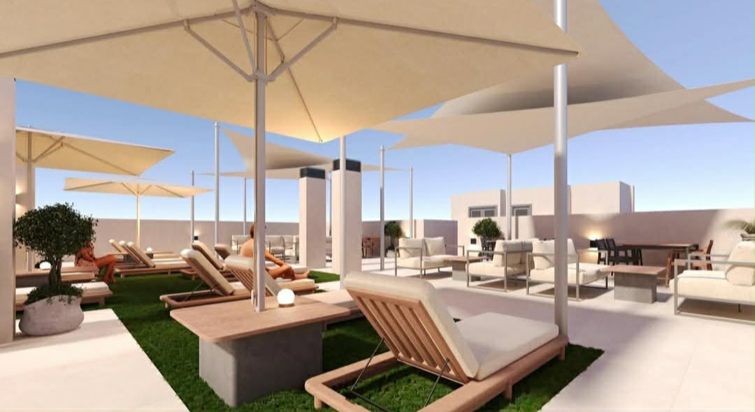 56 appartements de 1, 2 ou 3 chambres avec terrasses privées. Porte d’entrée blindée, salles de bain avec meubles-lavabos, pré-installation de la climatisation et certificat énergétique de classe A.  Espace commun au rez-de-chaussée avec jardins paysagers, coins salon, parking pour vélos et aire de jeux pour enfants.